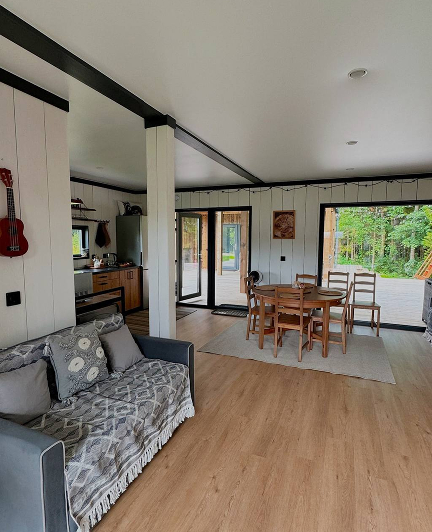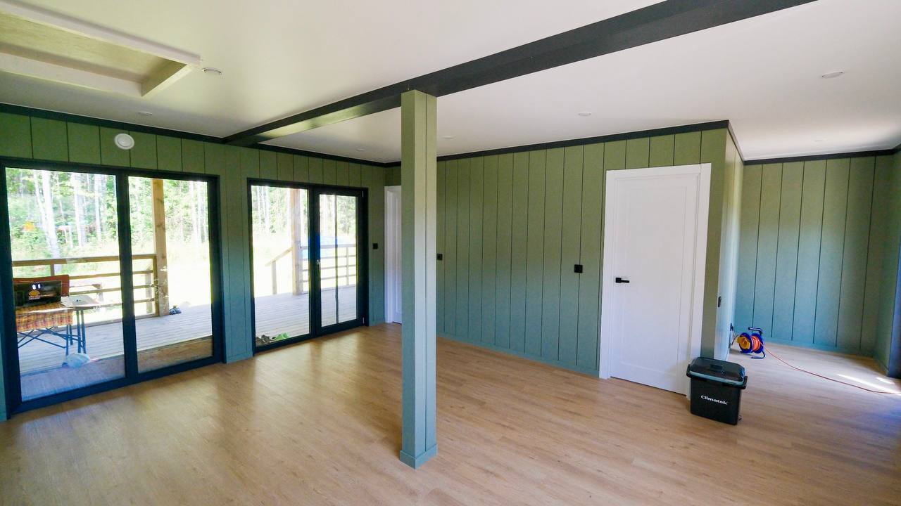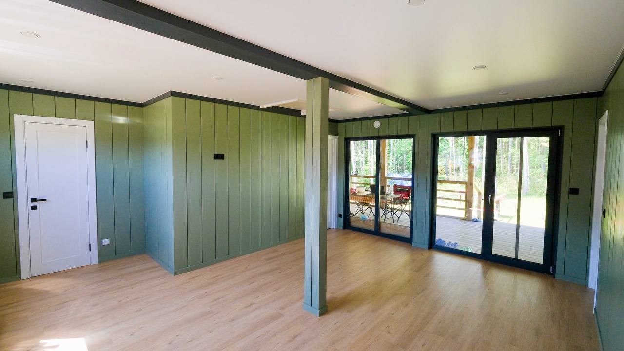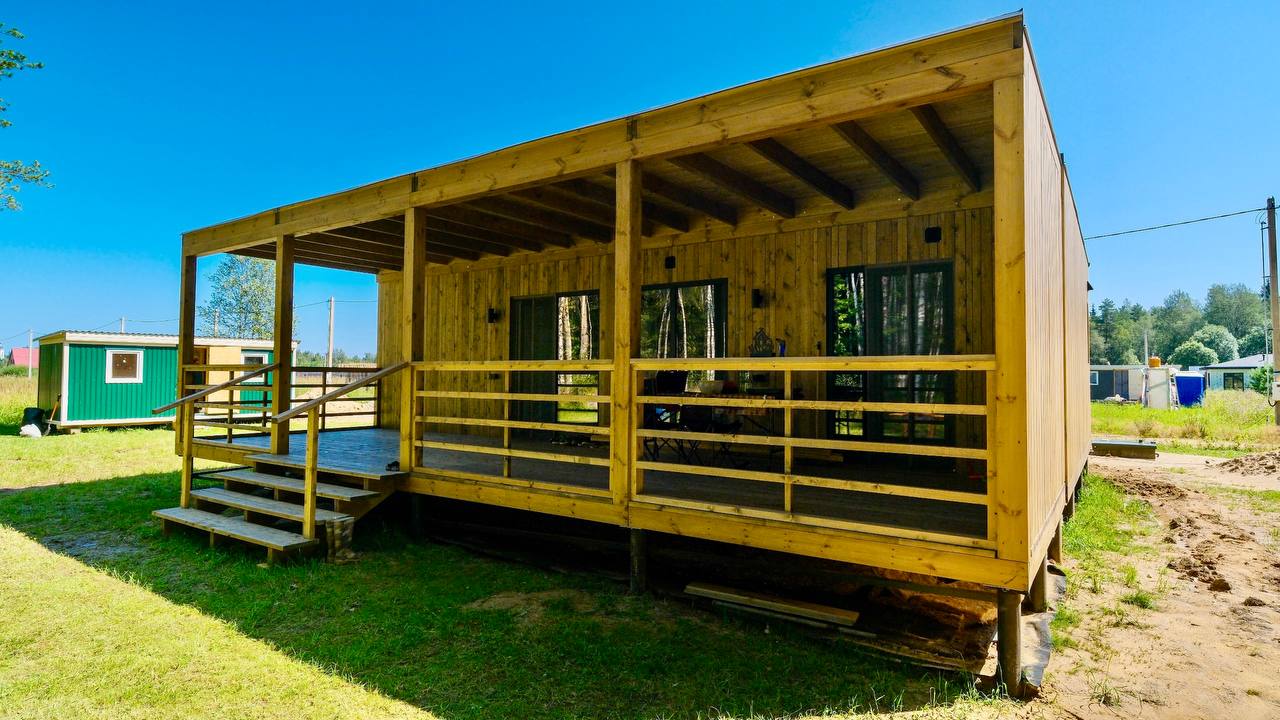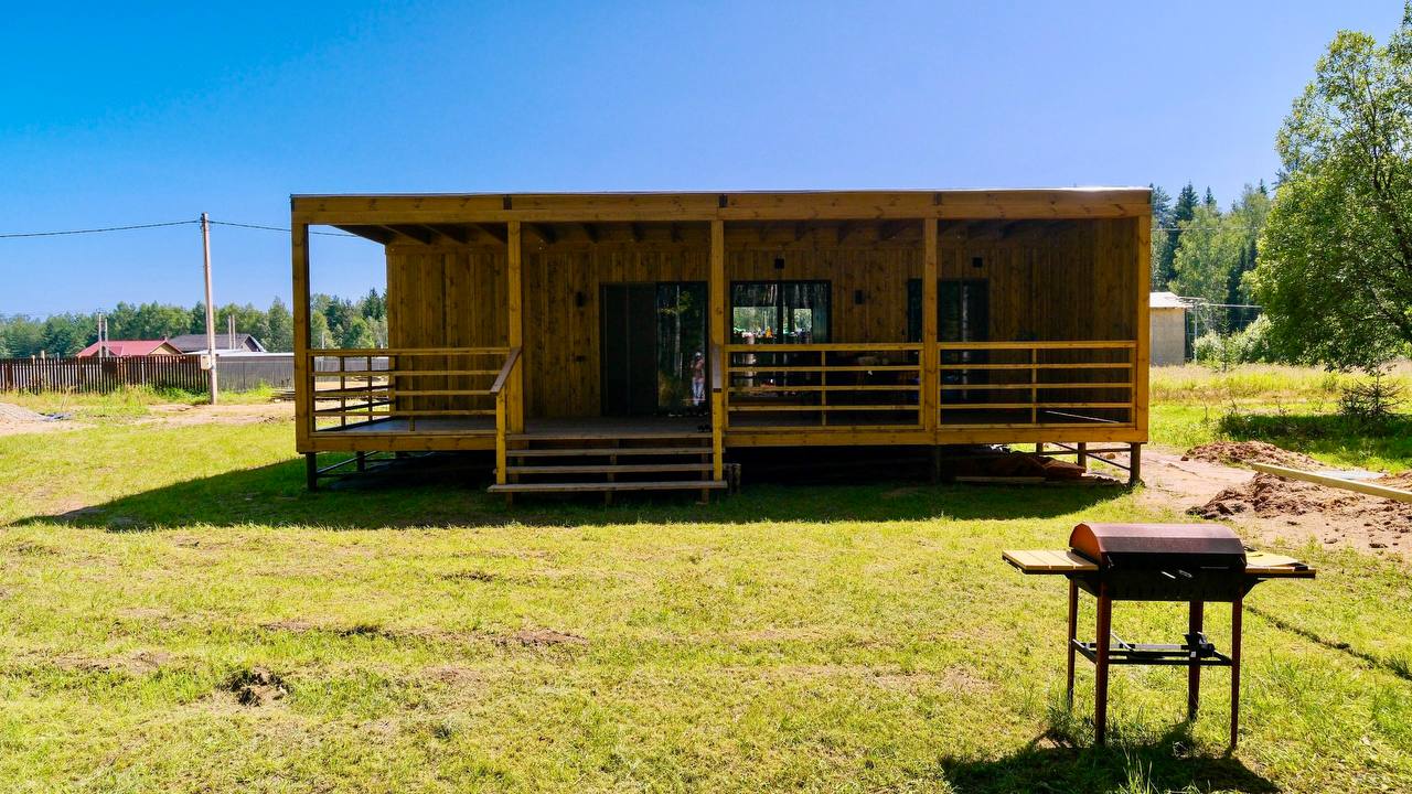 знаем, многие любят приезжать на более ранних стадиях каркас потрогать, дома в работе увидеть) у вас еще будет время, можно не торопиться). А на фото 4х модульный дом 50 кв.м. теплой площади.