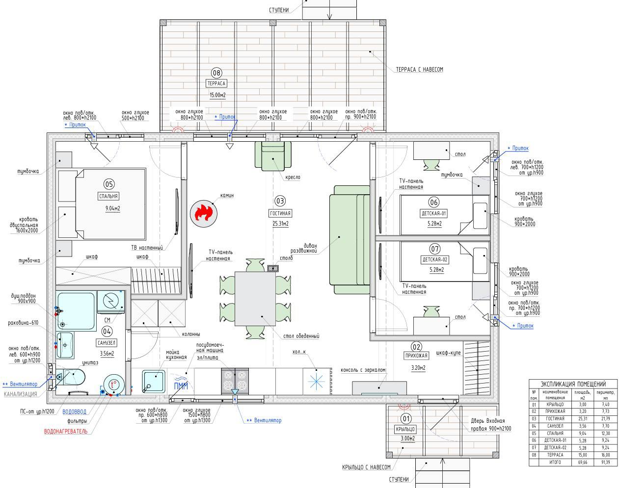 Заказчик в процессе попросил увеличить площадь крытой террасы, в остальном планировка та же