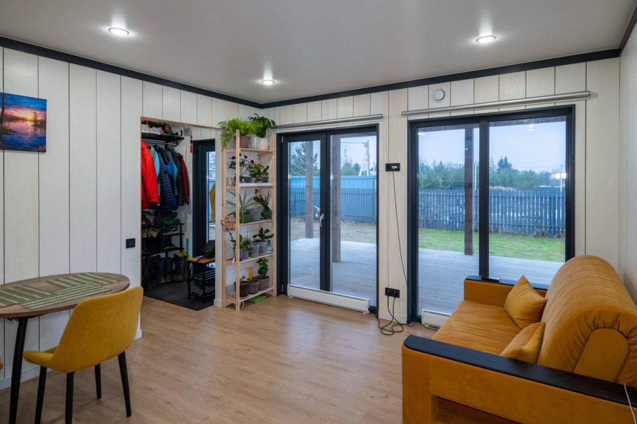 Этот дом с возможностью расширения! Сейчас это 2 габаритных модуля, а в перспективе по бокам прибавятся еще по одному негабаритному модулю (6 на 3м)