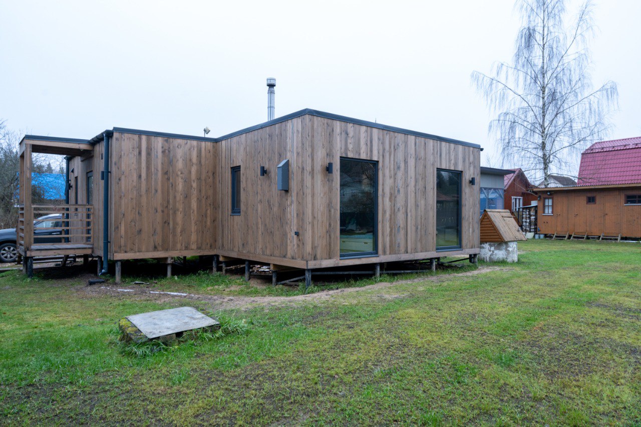 Внутренняя теплая площадь тут получилась - 64 кв.м. Цены на сайте актуальные за количество модулей, а планировку можем сделать индивидуальную (или запросить у нас варианты готовых, их у нас больше 20! На сайте, конечно, не выложены все)